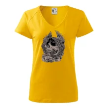 Tričko pre motorkára, na ktorom je pekelný jazdec - lebka a koleso s krídlami, si musí zaobstarať každý milovník motoriek. Chopper s tričkom, na ktorom, je motorkárska lebka s krídlami je skvelá kombinácia na vychádzku.