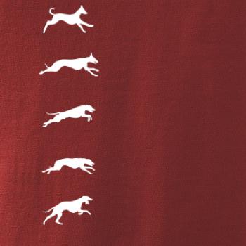Chrti na tričku v pohybe. Zhora až dolu.