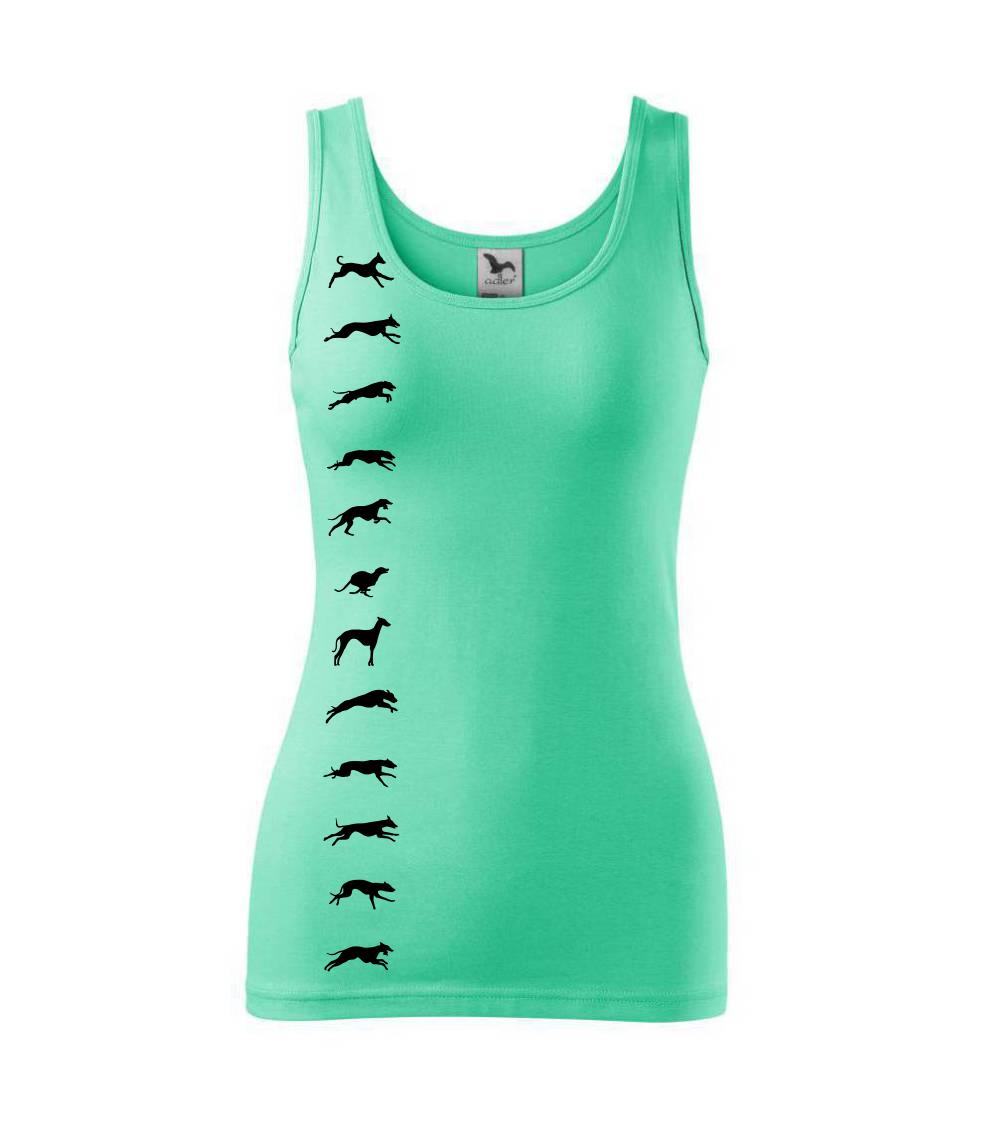 Chrti na tričku v pohybe. Zhora až dolu.