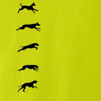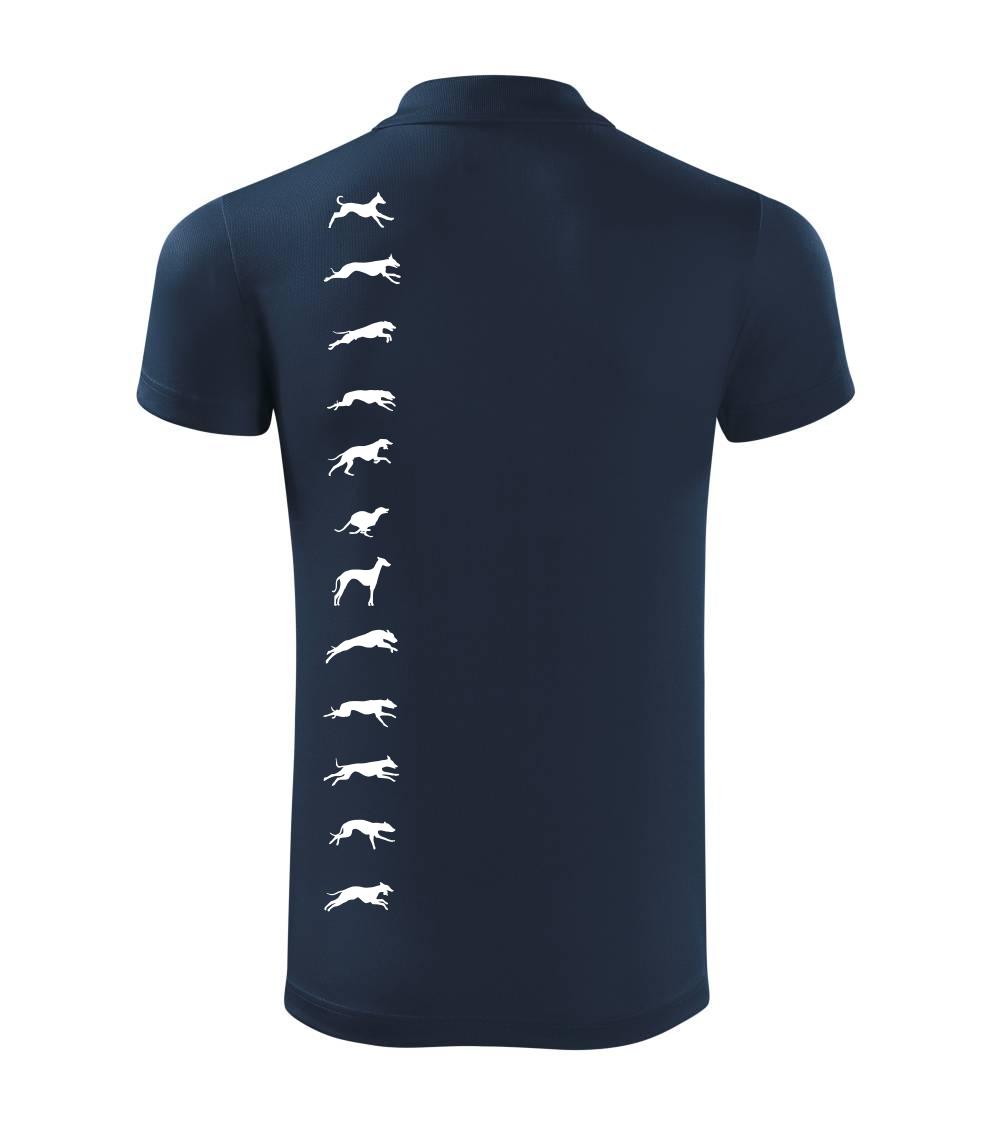 Chrti na tričku v pohybe. Zhora až dolu.