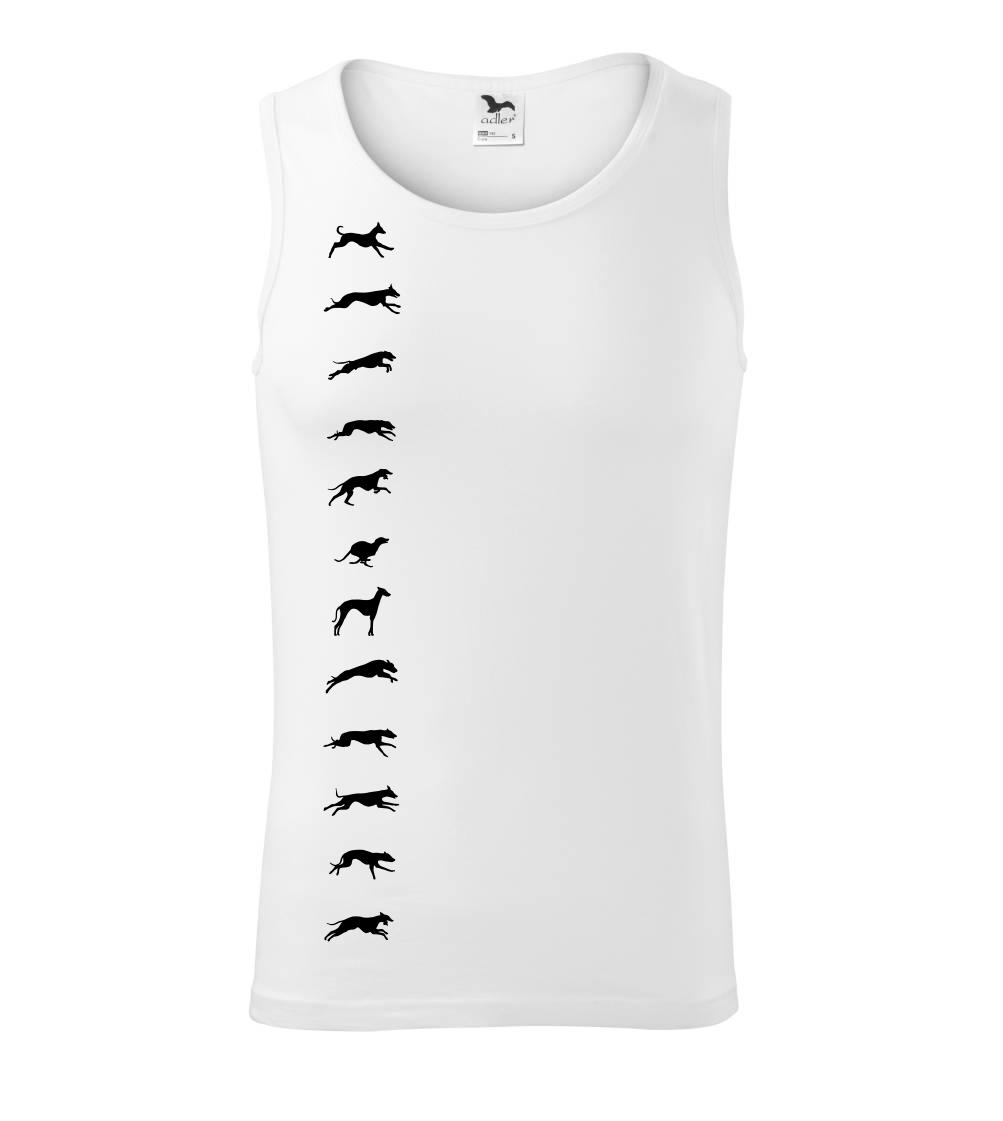 Chrti na tričku v pohybe. Zhora až dolu.