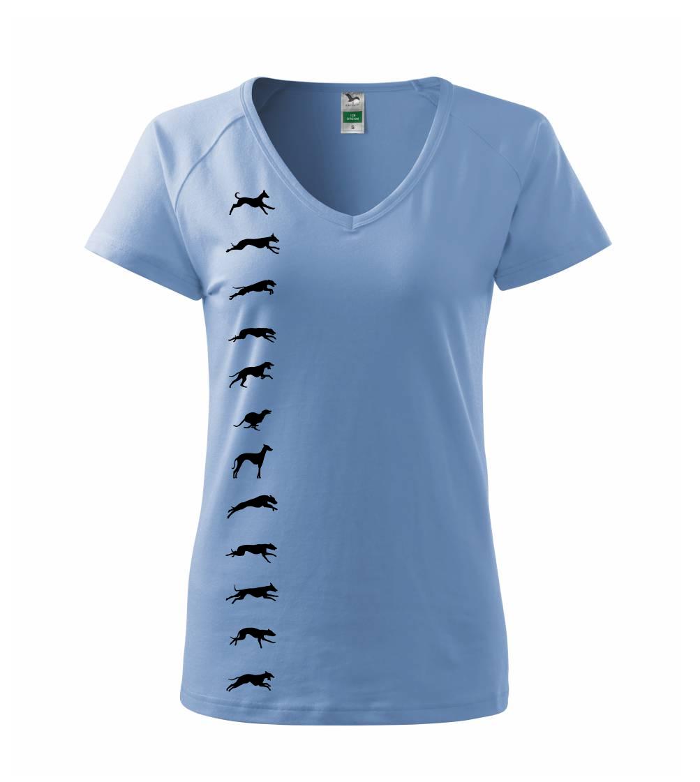 Chrti na tričku v pohybe. Zhora až dolu.