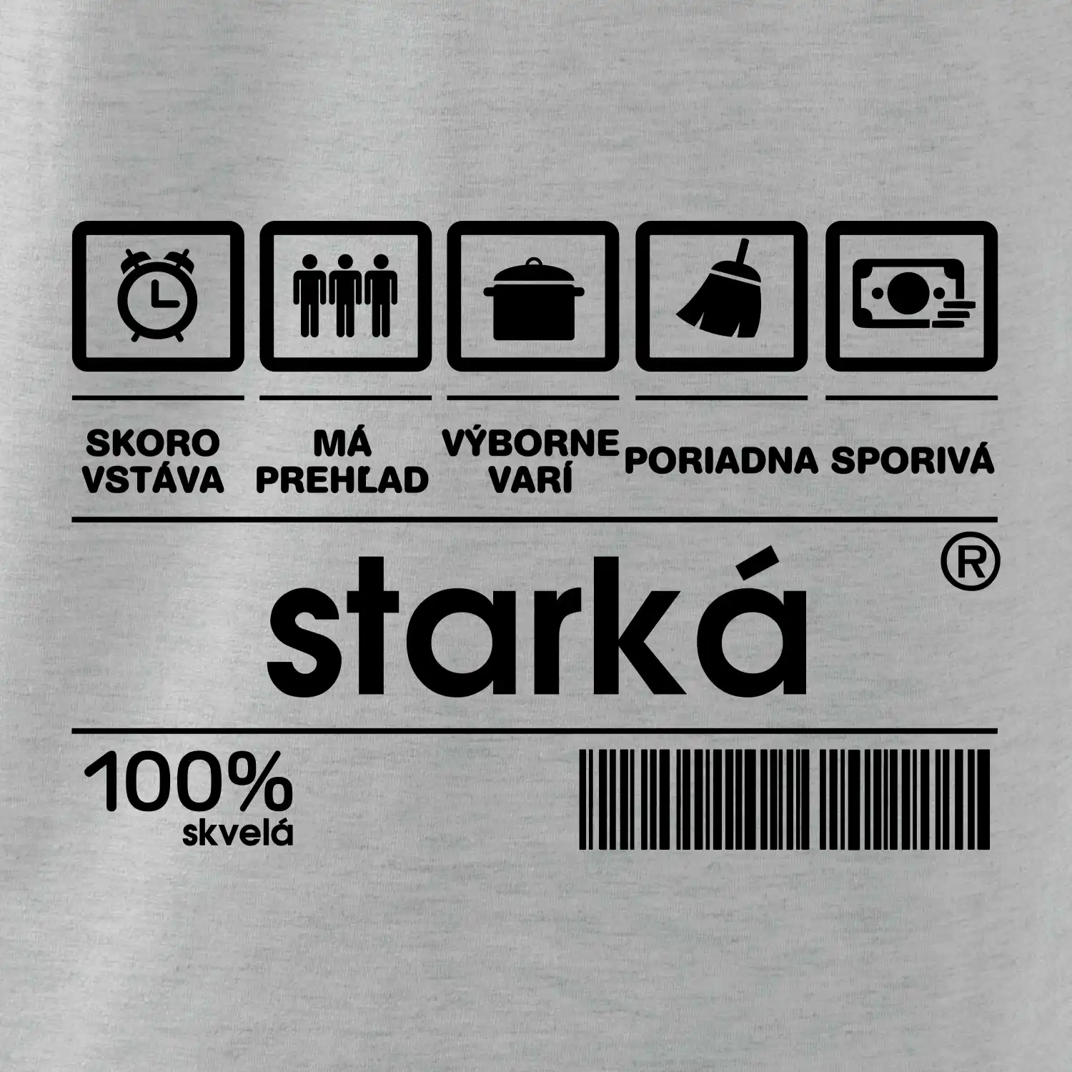 Sporivá, výborná kuchárka,...a aká je Tvoja starká? Poteš tú svoju vtipným, no pravdivým tričko. Stačí si vybrať tričko alebo mikinu v rôznych farbách.