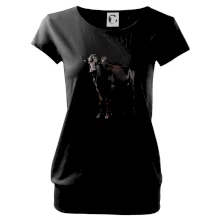 Trendové dámske tričko s veľmi krátkym rukávom, voľnejšieho strihu, v dolnom kraji všité do širokého lemu. Okrúhly priekrčník s úzkym lemom zo zhodného materiálu.