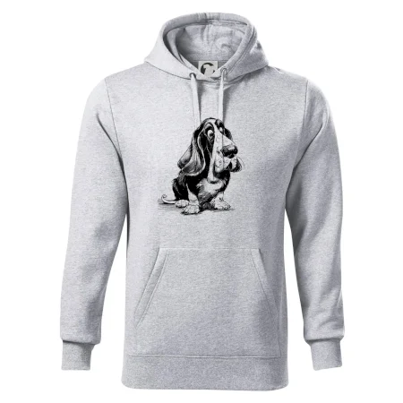 Čiernobiela karikatúra baset - Mikina pánska Cape s kapucňou