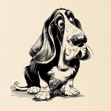 Čiernobiela karikatúra baset