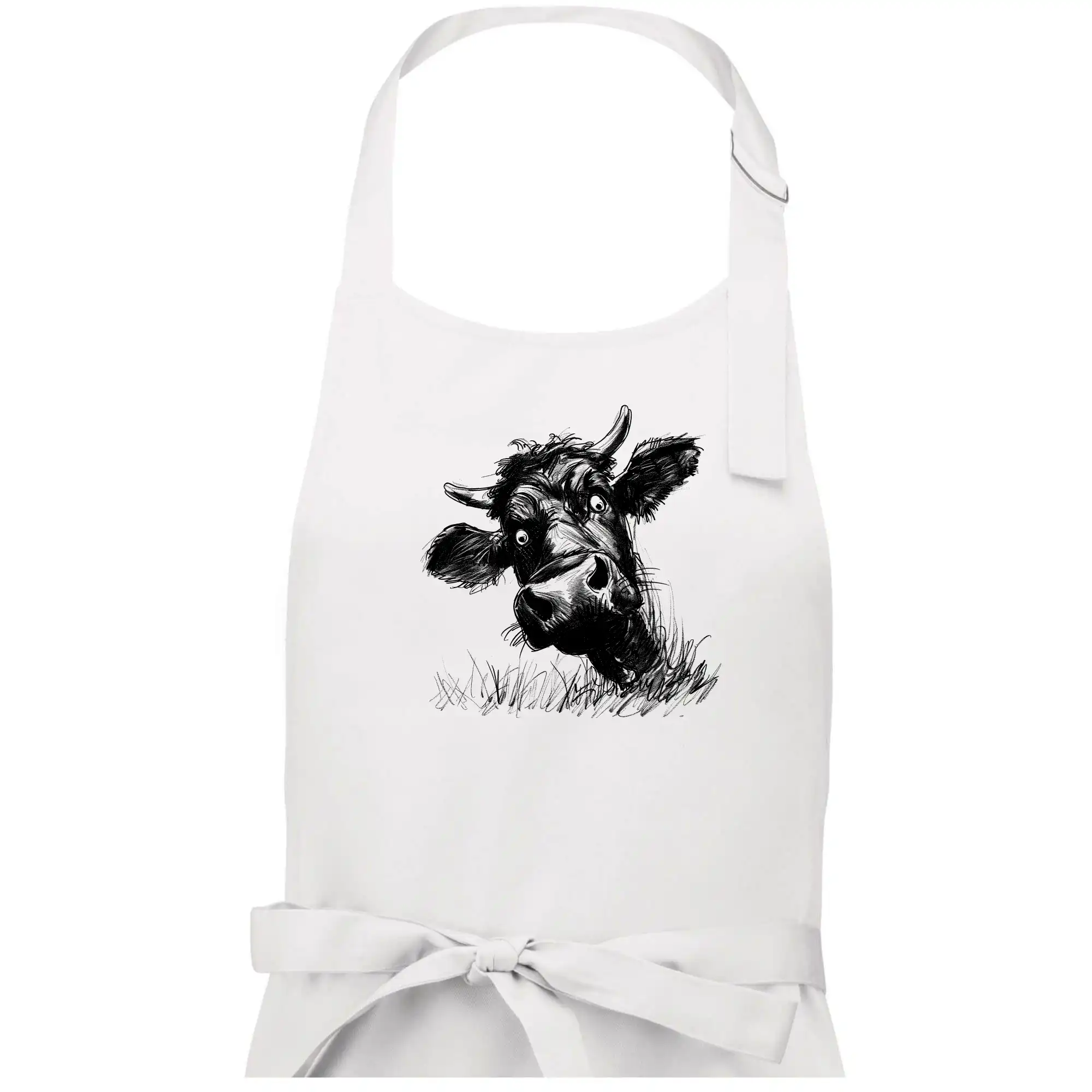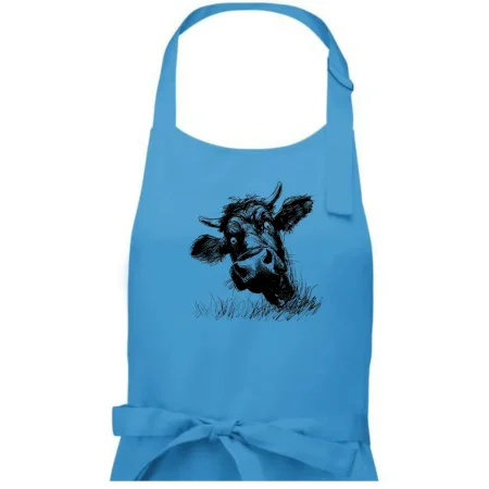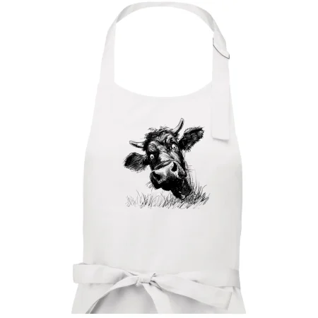 Čiernobiela karikatúra čierna krava hlava - Pánska zástera na varenie