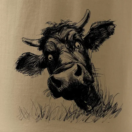 Čiernobiela karikatúra čierna krava hlava