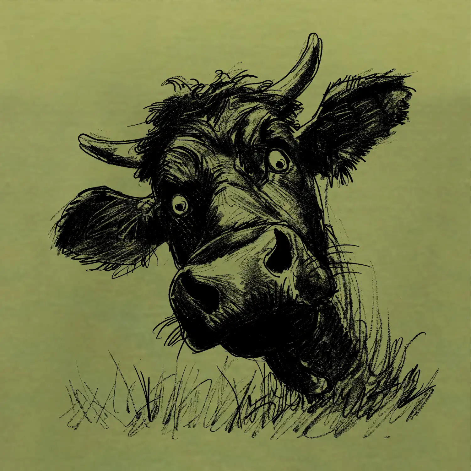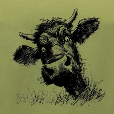 Čiernobiela karikatúra čierna krava hlava