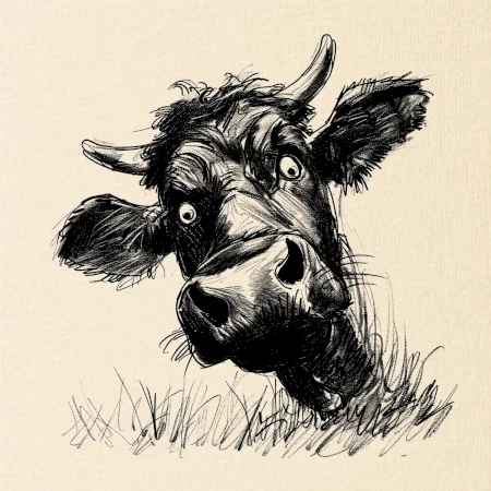 Čiernobiela karikatúra čierna krava hlava