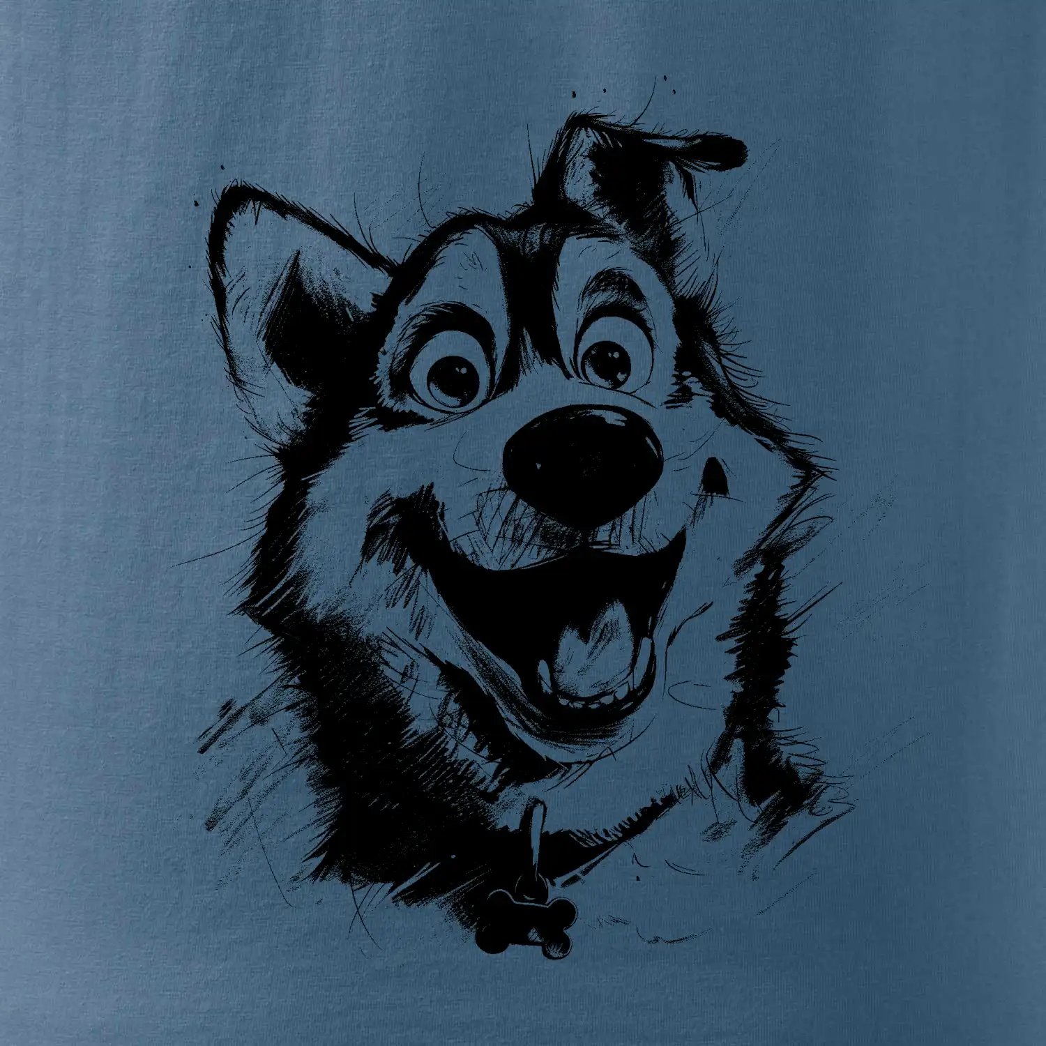 Čiernobiela karikatúra husky - Mikina pánska Cape s kapucňou