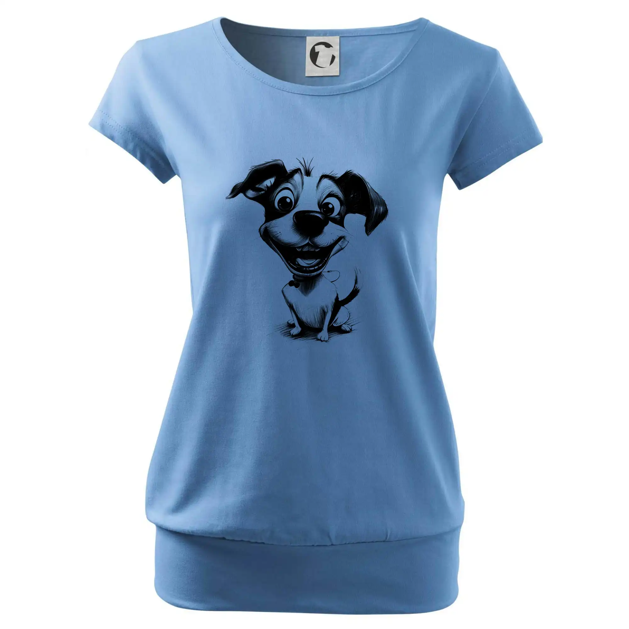 Trendové dámske tričko s veľmi krátkym rukávom, voľnejšieho strihu, v dolnom kraji všité do širokého lemu. Okrúhly priekrčník s úzkym lemom zo zhodného materiálu.