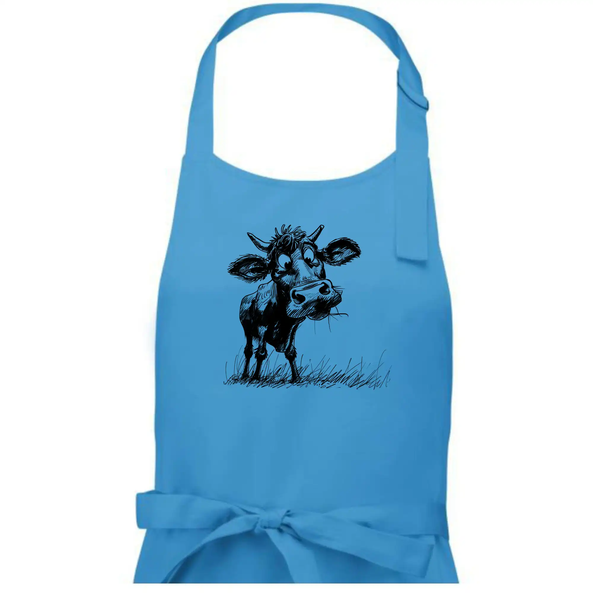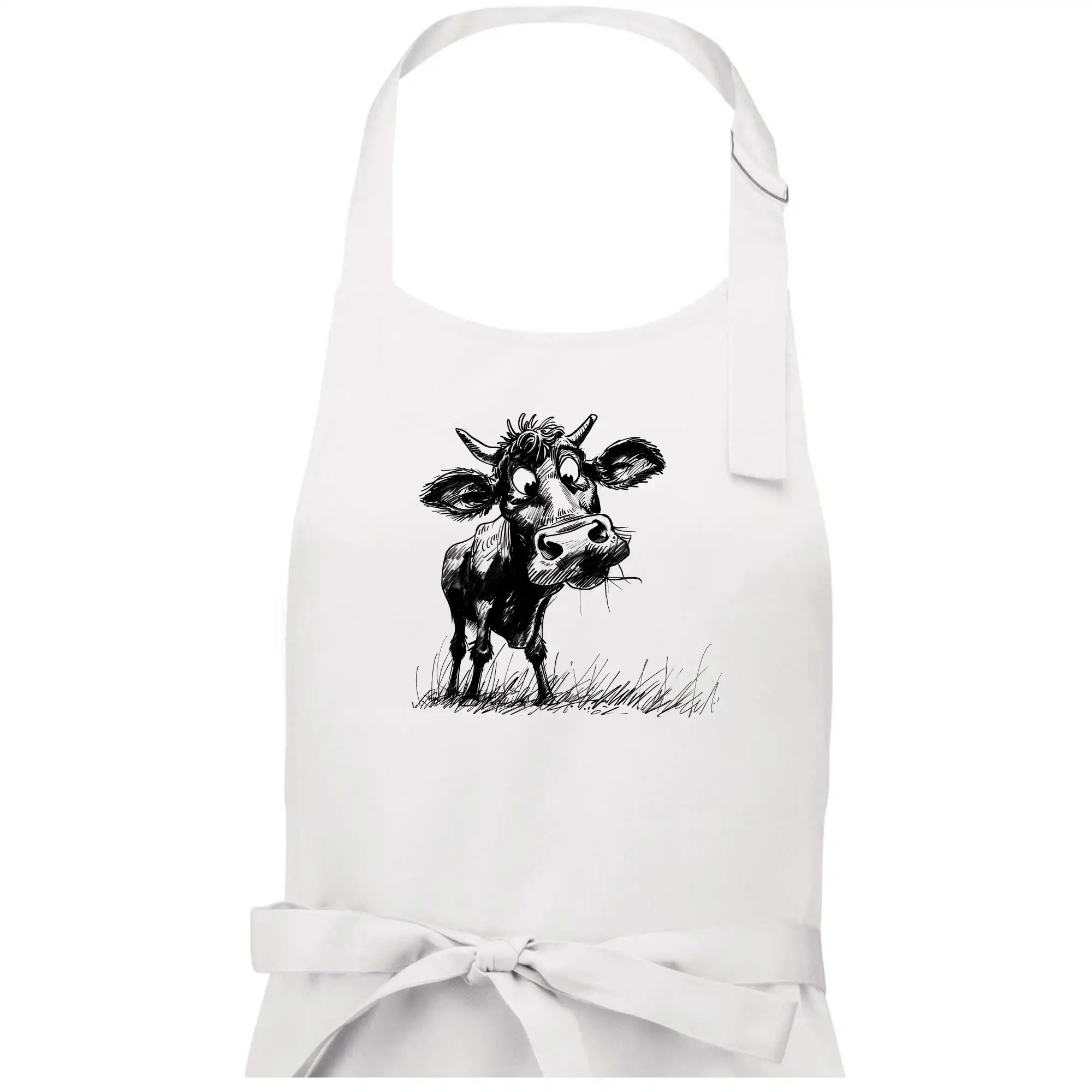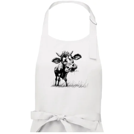 Čiernobiela karikatúra krava stojaca - Dámska zástera na varenie