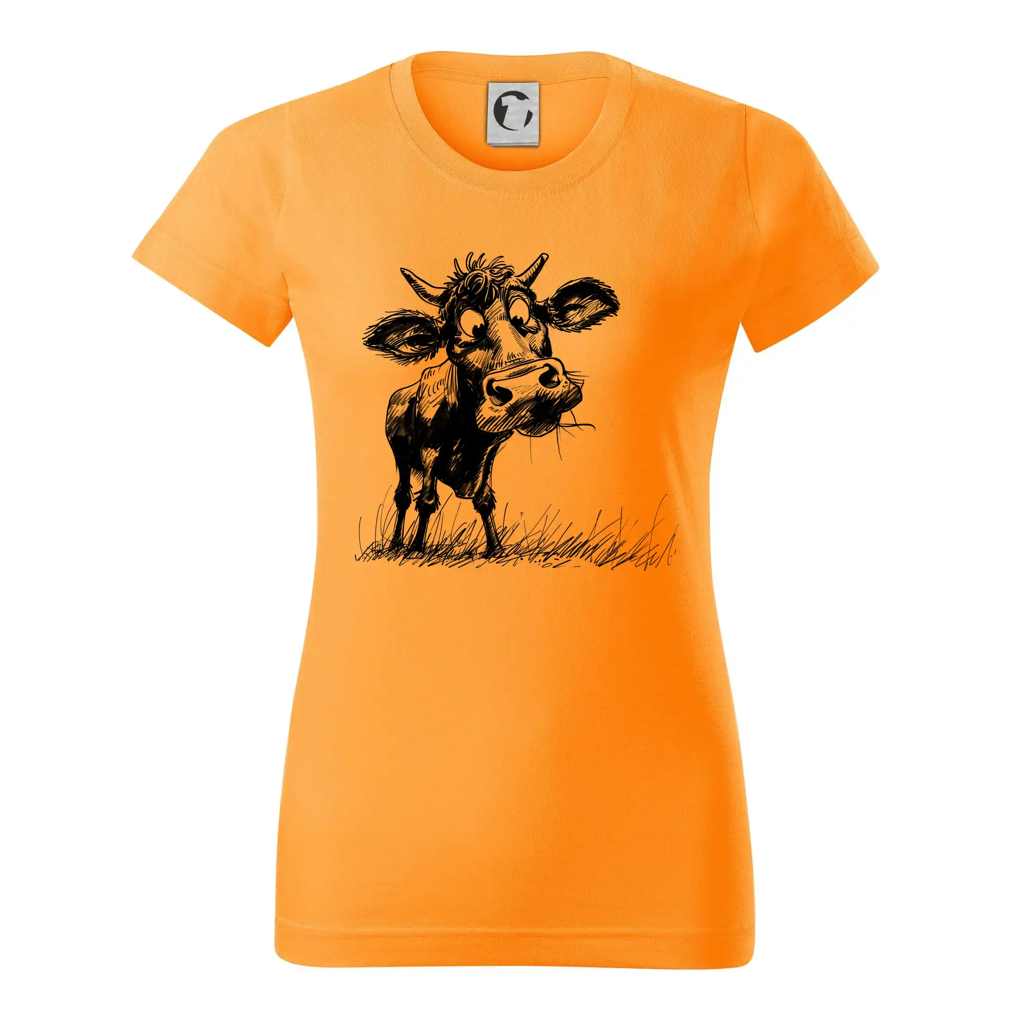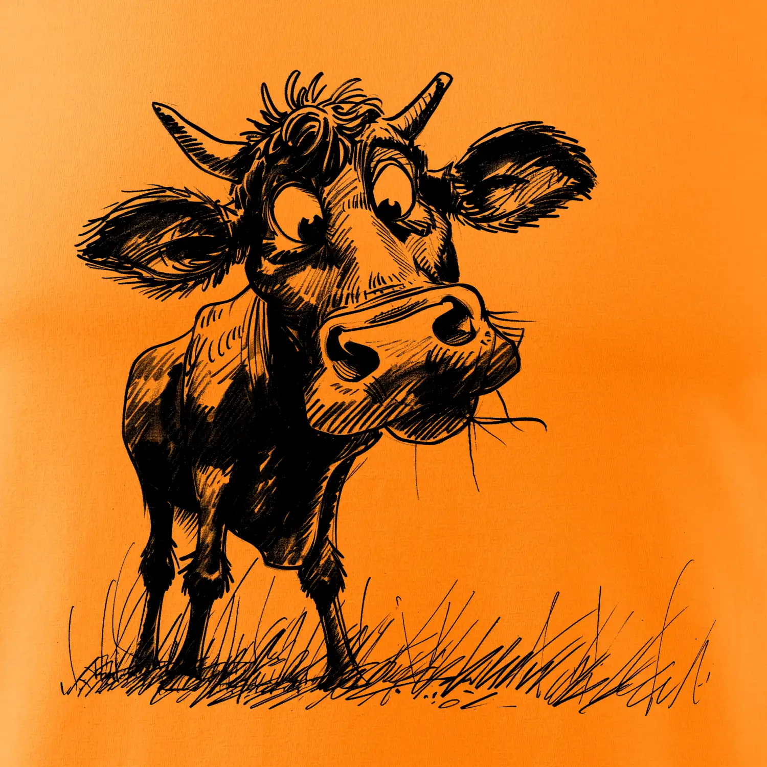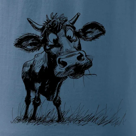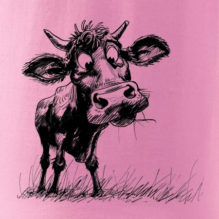 Čiernobiela karikatúra krava stojaca