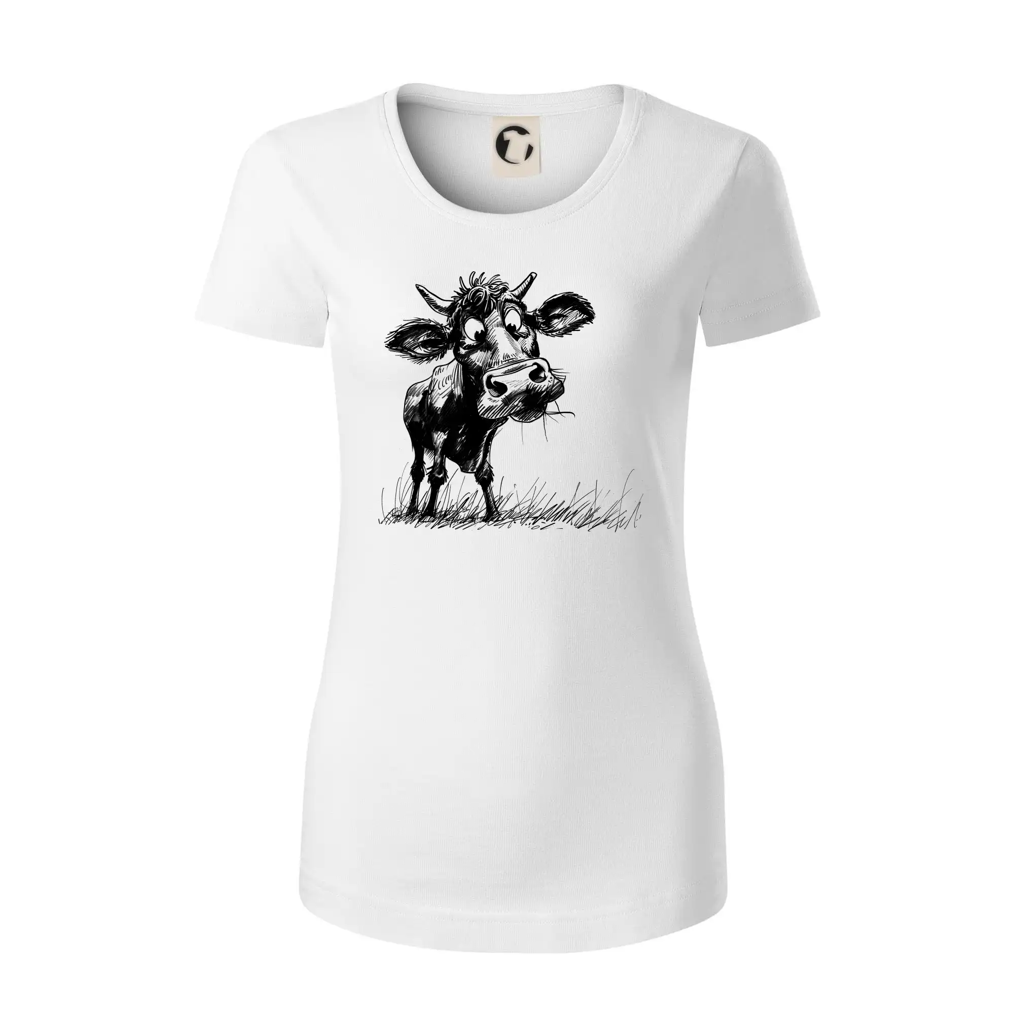 Čiernobiela karikatúra krava stojaca