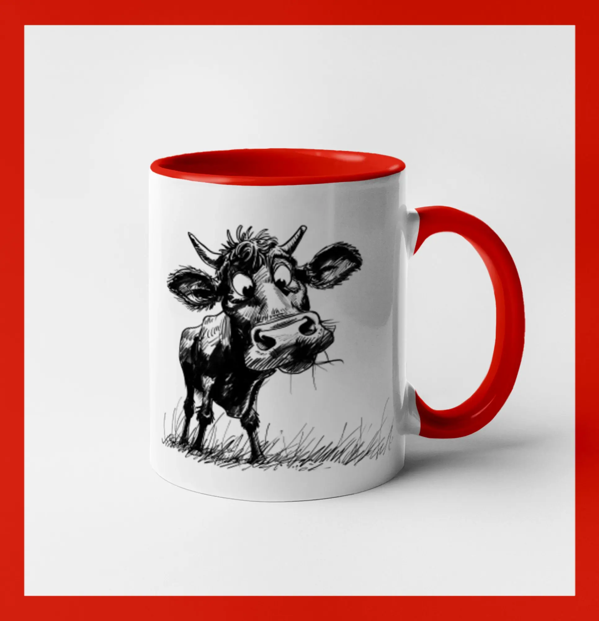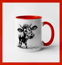 Čiernobiela karikatúra krava stojaca