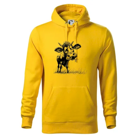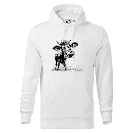 Čiernobiela karikatúra krava stojaca - Mikina pánska Cape s kapucňou