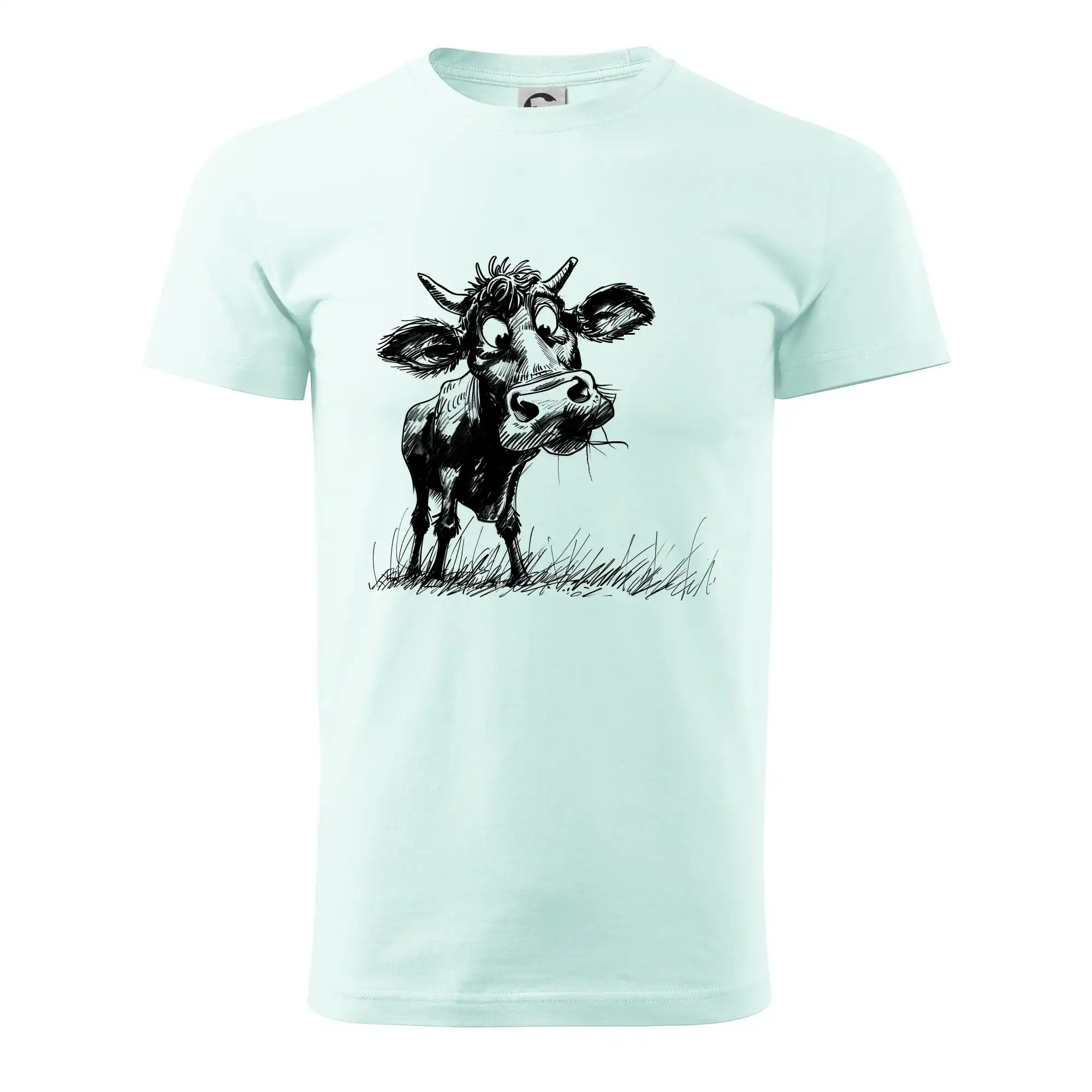 Čiernobiela karikatúra krava stojaca