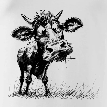 Čiernobiela karikatúra krava stojaca