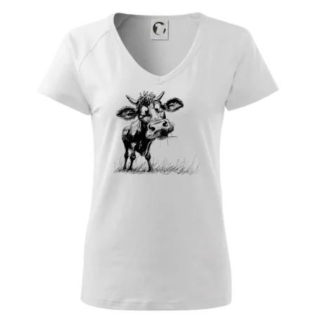 Čiernobiela karikatúra krava stojaca