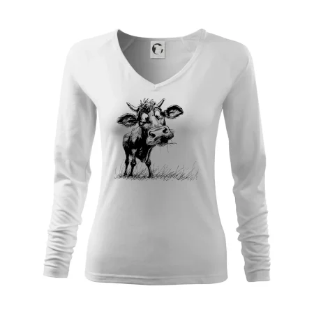 Čiernobiela karikatúra krava stojaca