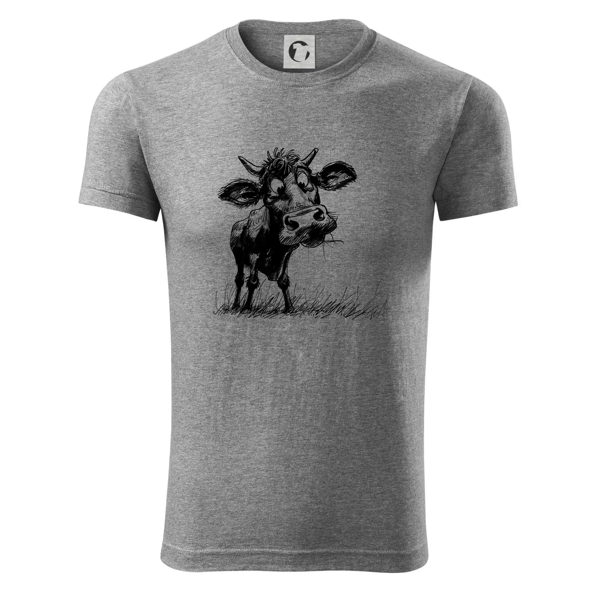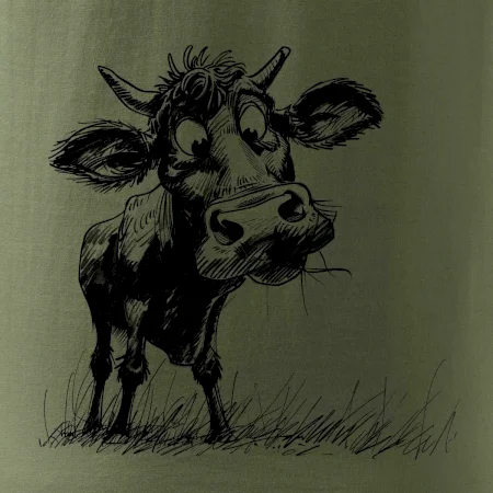 Čiernobiela karikatúra krava stojaca