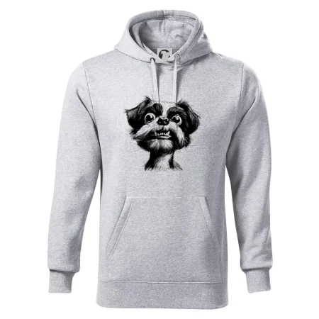 Čiernobiela karikatúra Ši-tzu - Mikina pánska Cape s kapucňou