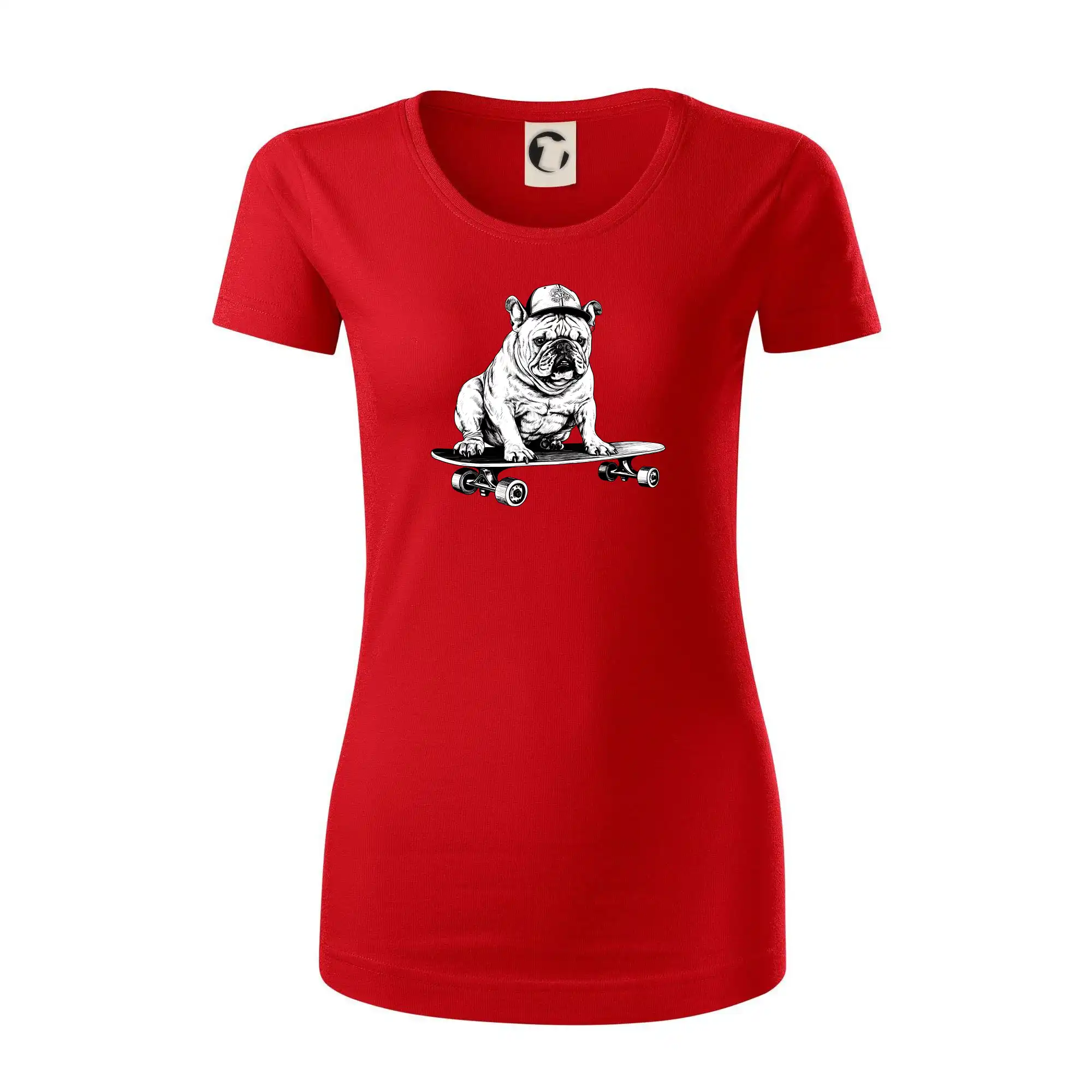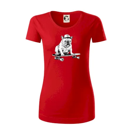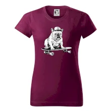 Čiernobiely buldog na skateboarde