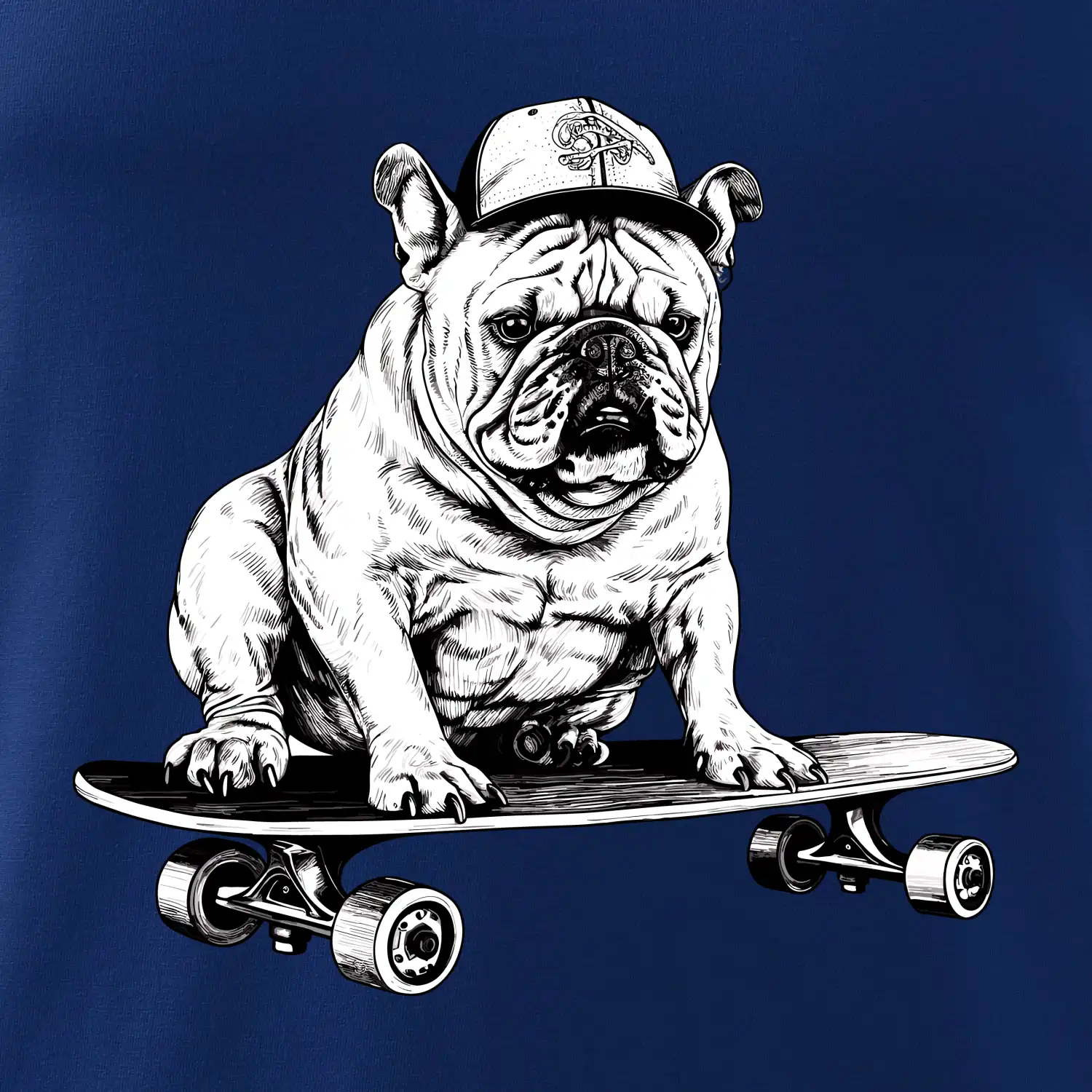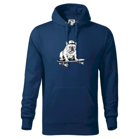 Čiernobiely buldog na skateboarde - Mikina pánska Cape s kapucňou