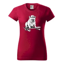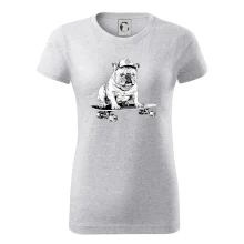 Čiernobiely buldog na skateboarde