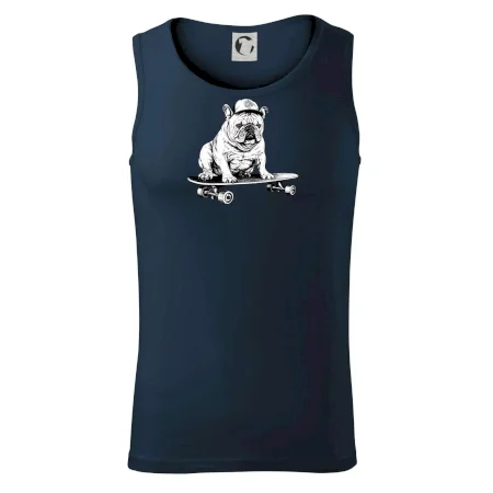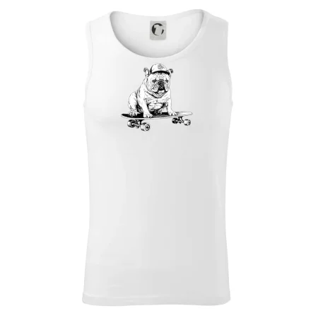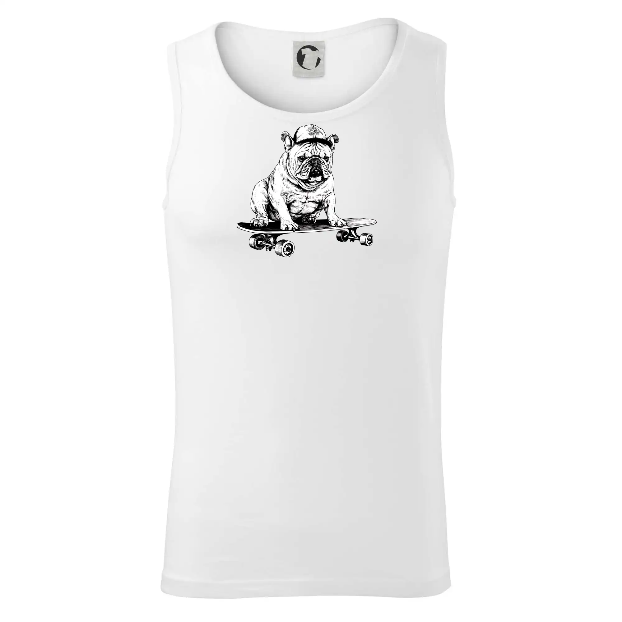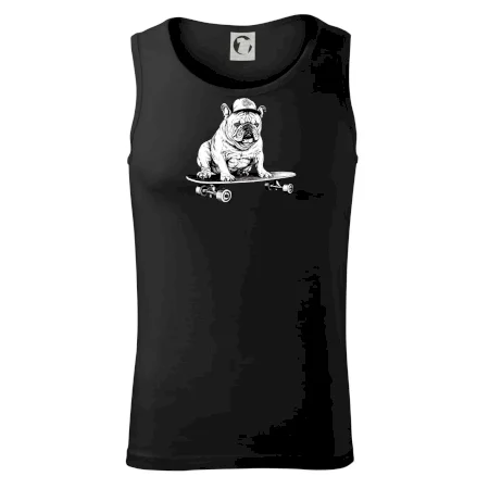 Čiernobiely buldog na skateboarde