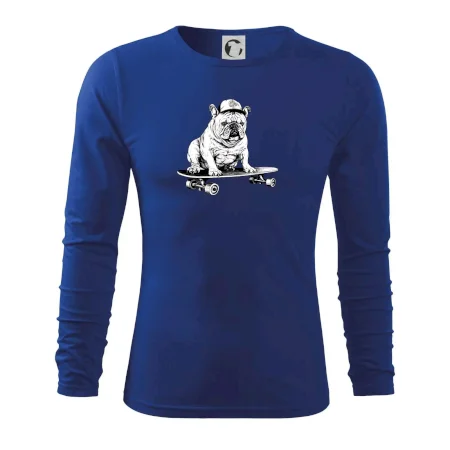 Čiernobiely buldog na skateboarde - Tričko s dlhým rukávom FIT-T long sleeve
