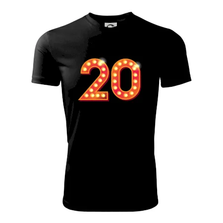 Narodeninové tričko pre oslávenca, ktorý oslavuje jubileum 20 rokov. Tričko, na ktorom svieti číslovka 20, je vhodný darček pre všetky hviezdy. Darček k dvadsiatym narodeninám.