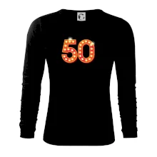 Narodeninové tričko pre oslávenca, ktorý oslavuje jubileum 50 rokov. Tričko, na ktorom svieti číslovka 50, je vhodný darček pre všetky hviezdy. Darček k päťdesiatym narodeninám.