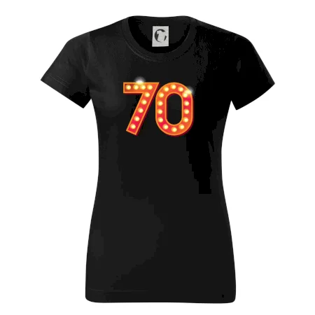 Narodeninové tričko pre oslávenca, ktorý oslavuje jubileum 70 rokov. Tričko, na ktorom svieti číslovka 70, je vhodný darček pre všetky hviezdy. Darček k sedemdesiatym narodeninám.