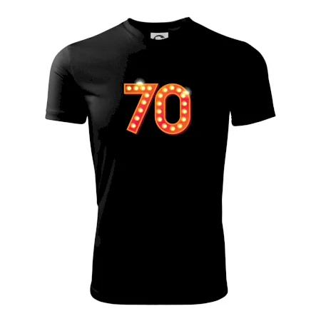 Narodeninové tričko pre oslávenca, ktorý oslavuje jubileum 70 rokov. Tričko, na ktorom svieti číslovka 70, je vhodný darček pre všetky hviezdy. Darček k sedemdesiatym narodeninám.
