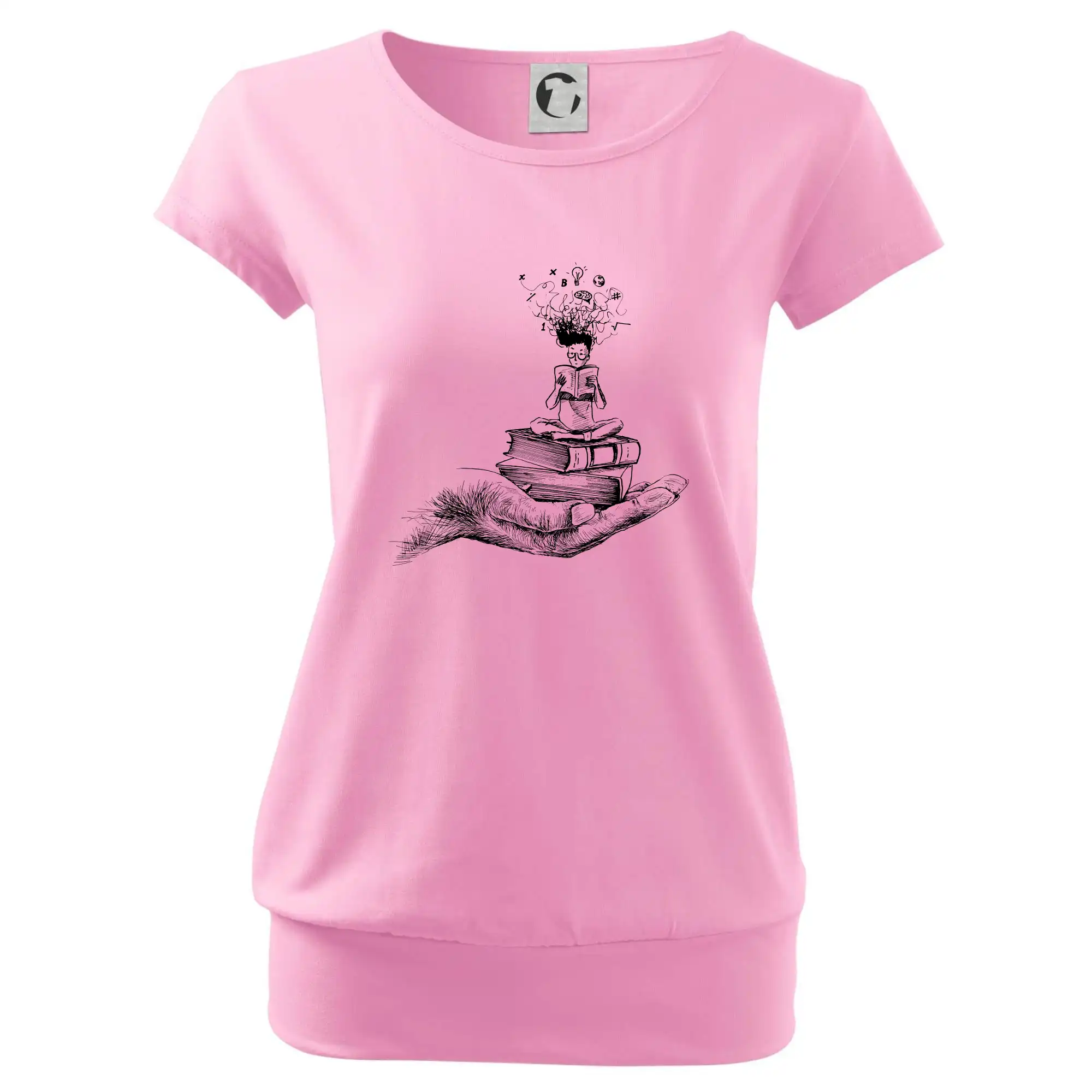 Trendové dámske tričko s veľmi krátkym rukávom, voľnejšieho strihu, v dolnom kraji všité do širokého lemu. Okrúhly priekrčník s úzkym lemom zo zhodného materiálu.