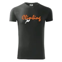 Poriadny horolezec musí mať poriadnu horolezeckú výbavu: karabínu, lano, úväz a samozrejme tričko s horolezeckým motívom!