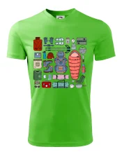Detské tričko strednej gramáže s bočnými švami. Úzky priekrčník s prídavkom 5% elastanu. Vnútorná časť zadného priekrčníka začistená tkanou páskou. Spevnený ramenný šev.