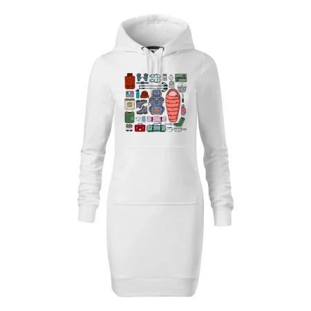 Dámske mikinové šaty MALFINI Snap 419 sú ideálnou voľbou pre ženy, ktoré hľadajú pohodlný a štýlový kúsok na voľný čas alebo každodenné nosenie. Ľahko vypasovaný strih s bočnými švami podčiarkuje ženskú siluetu, zatiaľ čo kapucňa s podšívkou a sťahovacou šnúrkou dodáva ležérny vzhľad. Šaty majú dĺžku nad kolená a sú vybavené našitým vreckom v štýle „klokanky“. Materiál je mäkký a príjemný na dotyk grâce à smesi bavlny a polyesteru s nepočesanou vnútornou stranou.