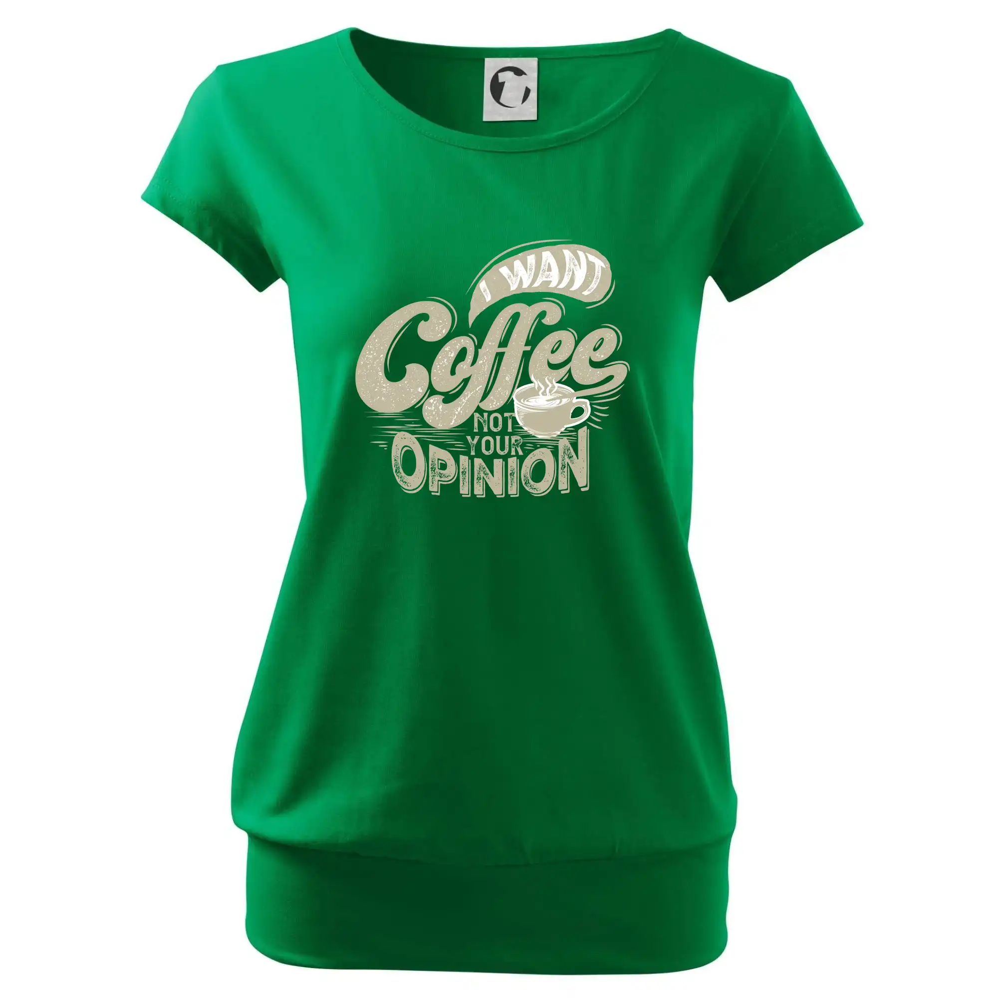 Trendové dámske tričko s veľmi krátkym rukávom, voľnejšieho strihu, v dolnom kraji všité do širokého lemu. Okrúhly priekrčník s úzkym lemom zo zhodného materiálu.