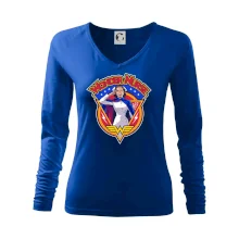 Dámske tričko s ľahko priliehavým strihom, ktorý pôsobí elegantne a skvele padne. Tento typ trička má kratšie rukávy a hlbší výstrih zakončený jemným lemovaním.