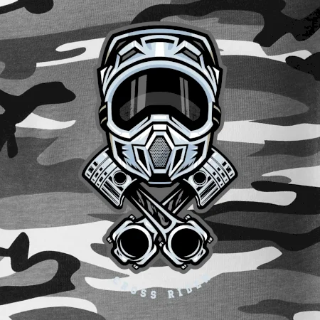 Tričko strednej gramáže vo farbách camouflage. Strih s bočnými švami. Lem priekrčníku z rebrového úpletu s prídavkom 5% elastanu. Vnútorná časť zadného priekrčníka začistená páskou vo farbe camouflage.