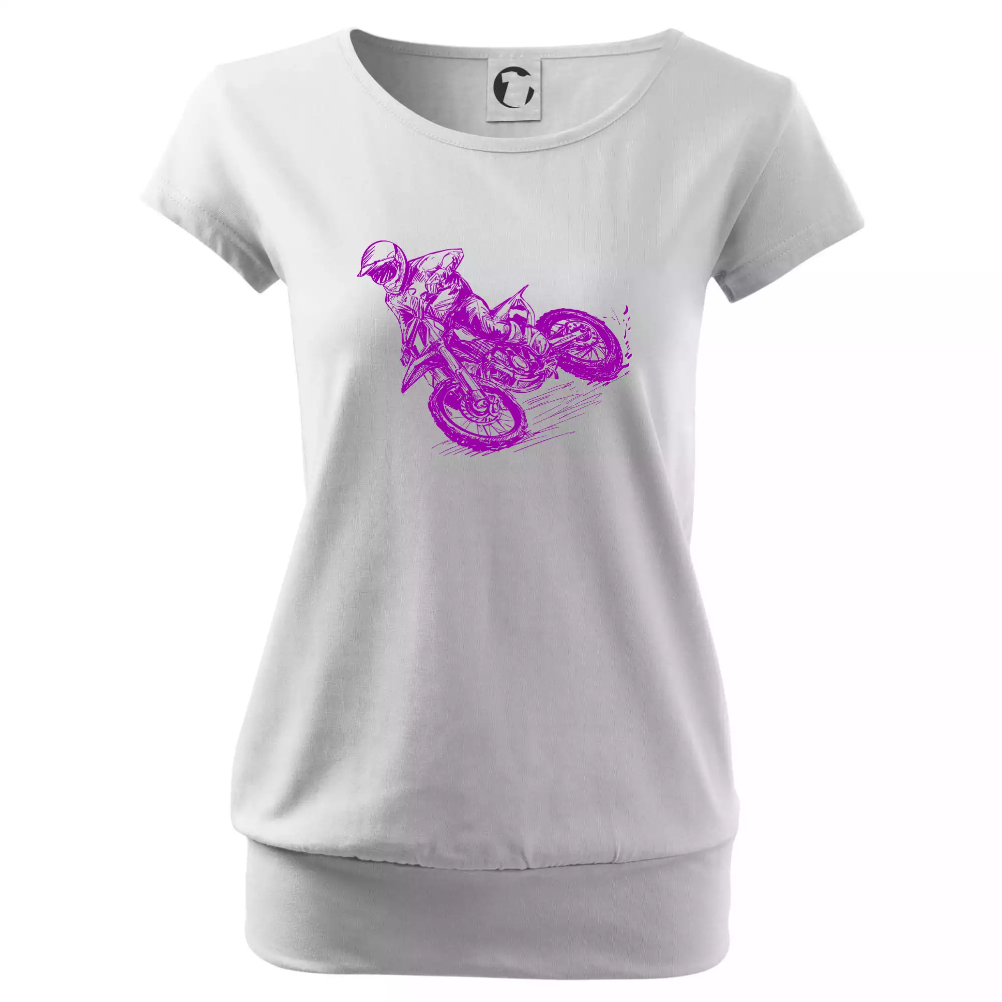 Trendové dámske tričko s veľmi krátkym rukávom, voľnejšieho strihu, v dolnom kraji všité do širokého lemu. Okrúhly priekrčník s úzkym lemom zo zhodného materiálu.