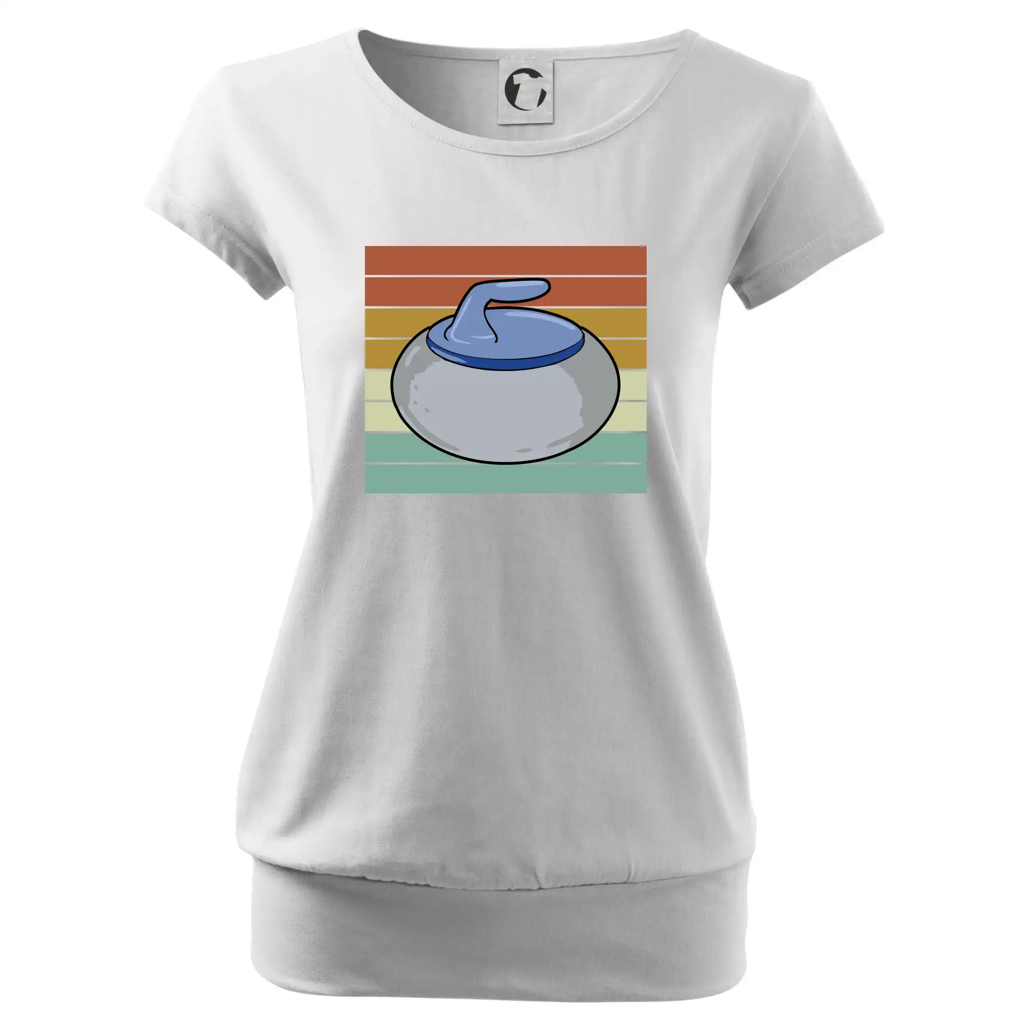 Trendové dámske tričko s veľmi krátkym rukávom, voľnejšieho strihu, v dolnom kraji všité do širokého lemu. Okrúhly priekrčník s úzkym lemom zo zhodného materiálu.