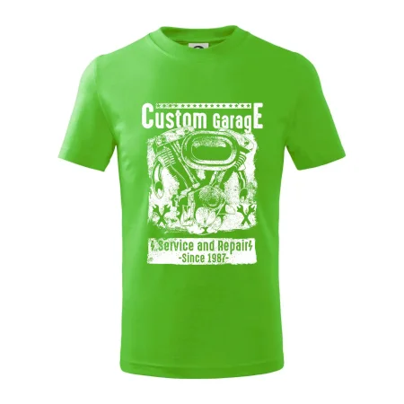 Detské tričko strednej gramáže s bočnými švami. Úzky priekrčník s prídavkom 5% elastanu. Vnútorná časť zadného priekrčníka začistená tkanou páskou. Spevnený ramenný šev.