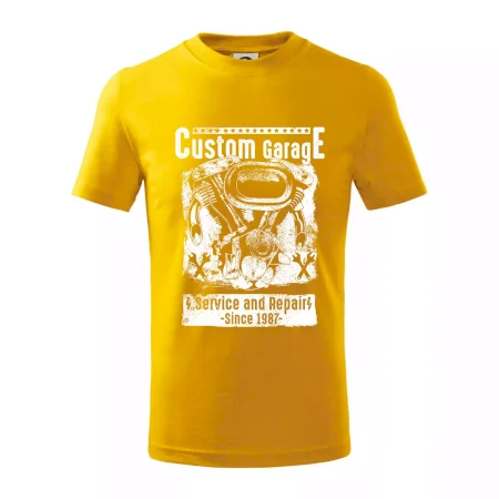 Detské tričko strednej gramáže s bočnými švami. Úzky priekrčník s prídavkom 5% elastanu. Vnútorná časť zadného priekrčníka začistená tkanou páskou. Spevnený ramenný šev.