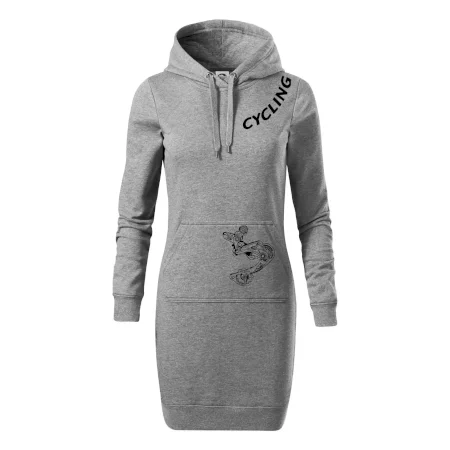 Dámske mikinové šaty MALFINI Snap 419 sú ideálnou voľbou pre ženy, ktoré hľadajú pohodlný a štýlový kúsok na voľný čas alebo každodenné nosenie. Ľahko vypasovaný strih s bočnými švami podčiarkuje ženskú siluetu, zatiaľ čo kapucňa s podšívkou a sťahovacou šnúrkou dodáva ležérny vzhľad. Šaty majú dĺžku nad kolená a sú vybavené našitým vreckom v štýle „klokanky“. Materiál je mäkký a príjemný na dotyk grâce à smesi bavlny a polyesteru s nepočesanou vnútornou stranou.
