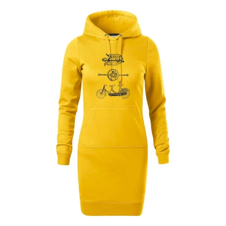 Dámske mikinové šaty MALFINI Snap 419 sú ideálnou voľbou pre ženy, ktoré hľadajú pohodlný a štýlový kúsok na voľný čas alebo každodenné nosenie. Ľahko vypasovaný strih s bočnými švami podčiarkuje ženskú siluetu, zatiaľ čo kapucňa s podšívkou a sťahovacou šnúrkou dodáva ležérny vzhľad. Šaty majú dĺžku nad kolená a sú vybavené našitým vreckom v štýle „klokanky“. Materiál je mäkký a príjemný na dotyk grâce à smesi bavlny a polyesteru s nepočesanou vnútornou stranou.