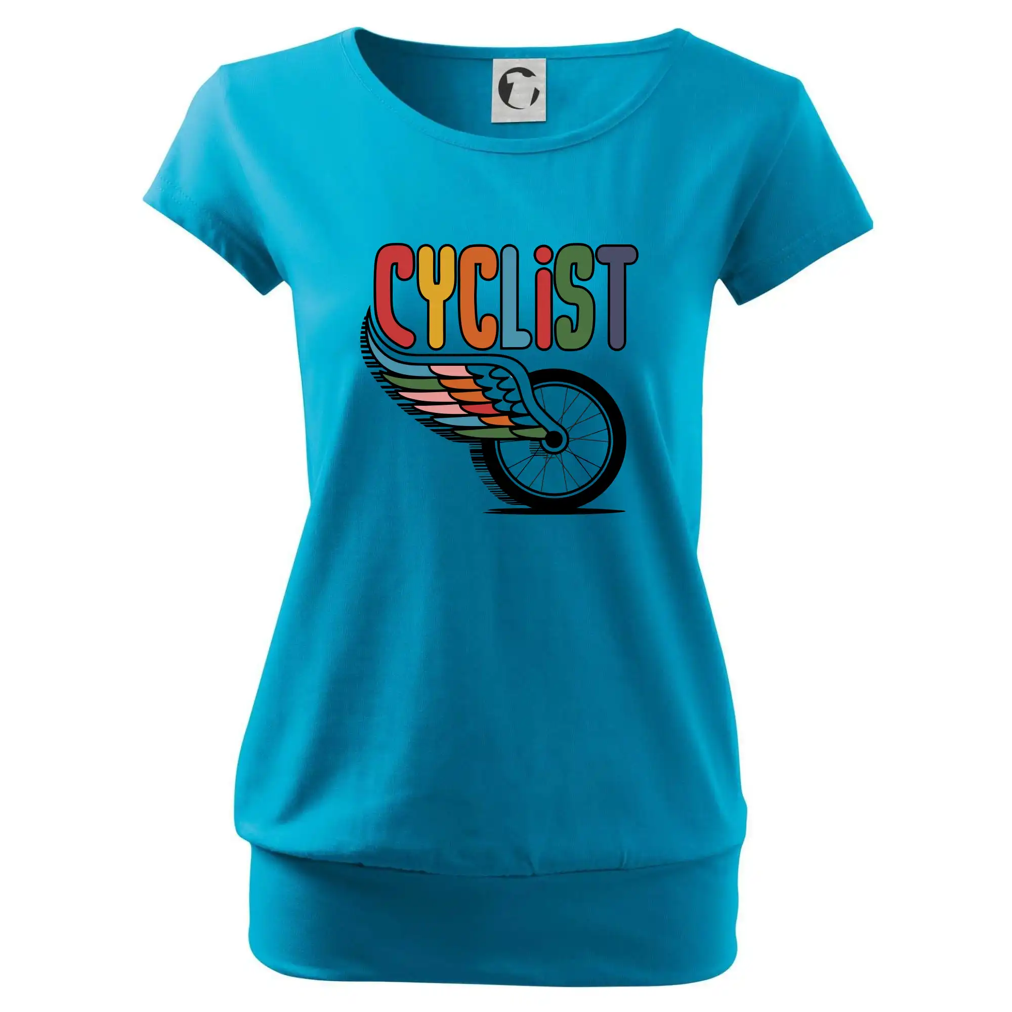 Trendové dámske tričko s veľmi krátkym rukávom, voľnejšieho strihu, v dolnom kraji všité do širokého lemu. Okrúhly priekrčník s úzkym lemom zo zhodného materiálu.